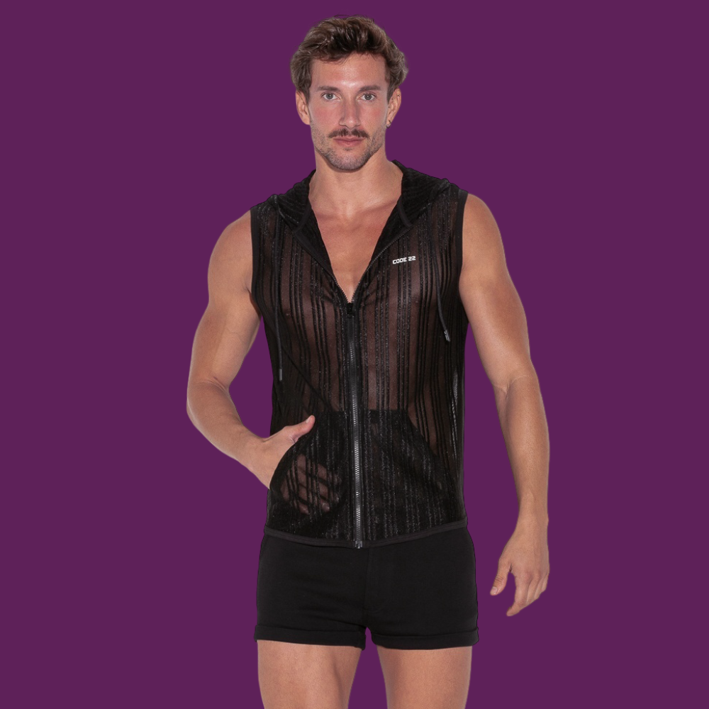 Sheer stripe sleevess hoody