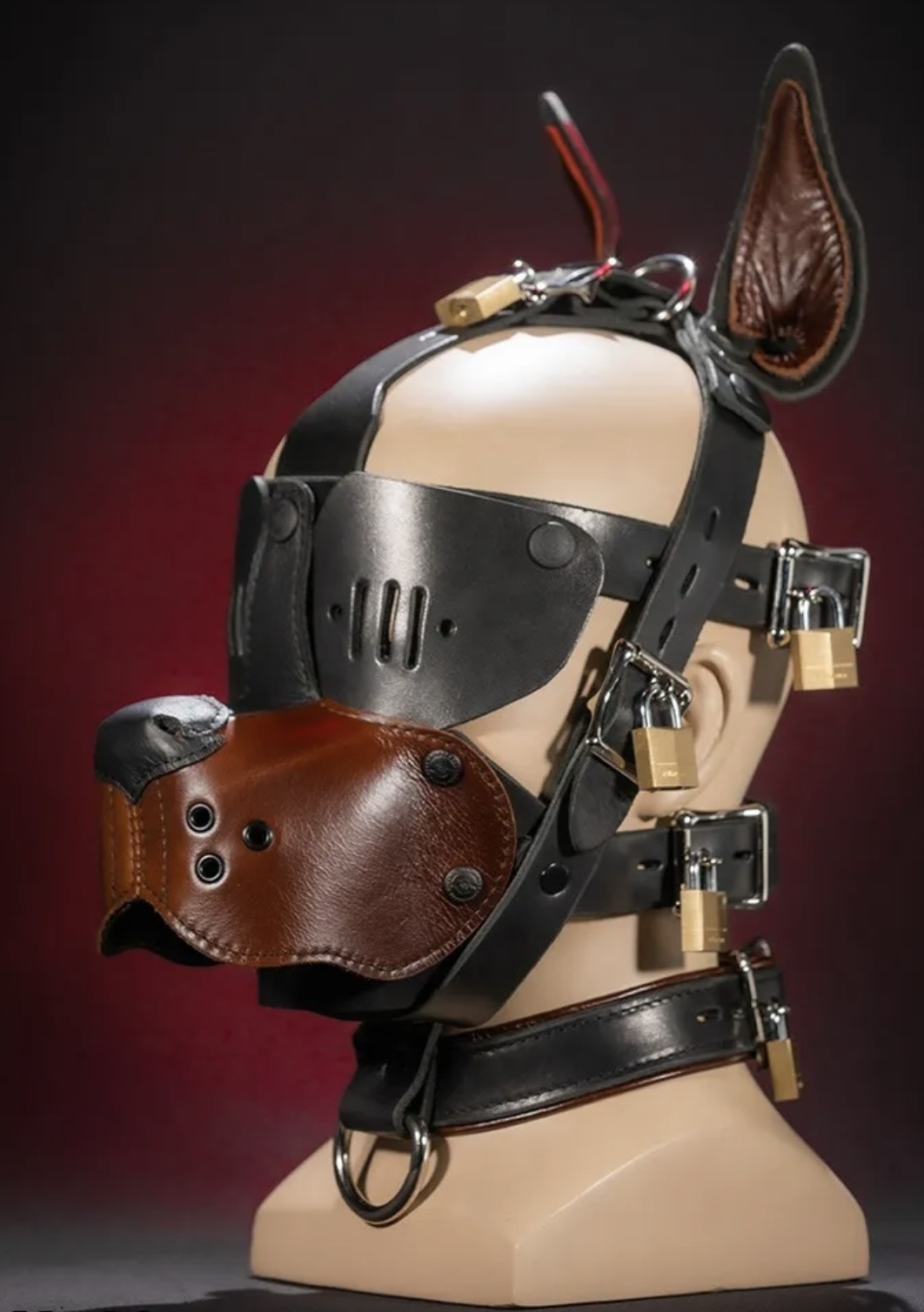 Un cuir solide en latigo est utilisé pour donner à la muselière de la structure et de la durabilité - associé à 4 boucles de verrouillage, votre chien sexuel ne pourra pas s'échapper tant que vous n'en aurez pas fini avec lui.