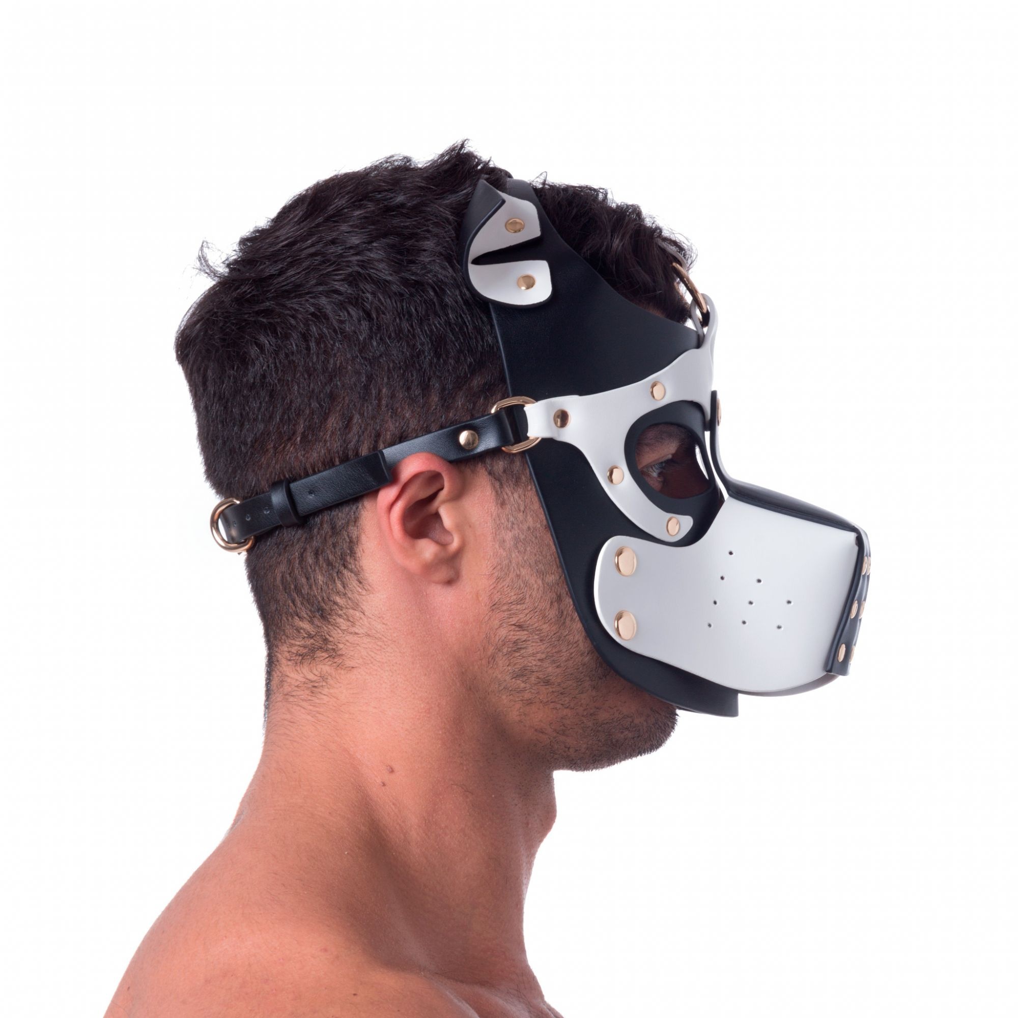 Bien que qualifiée de "Bondage", cette cagoule joue sur une esthétique canine légèrement rebelle, parfaite pour incarner un chiot joueur au caractère bien trempé.
